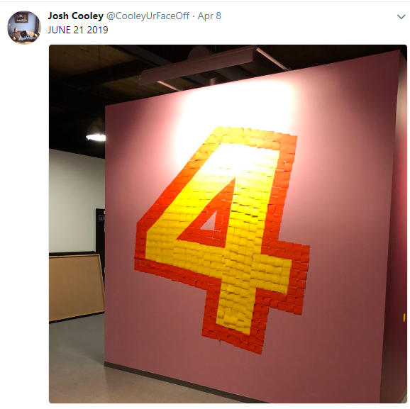 Cooley tweeted an image of the number four, with the caption 'June 21 2019.'