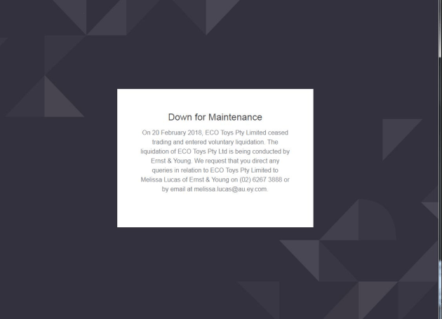 “On 20 February 2018, ECO Toys Pty Limited ceased trading and entered voluntary liquidation. The liquidation of ECO Toys Pty Ltd is being conducted by Ernst & Young.